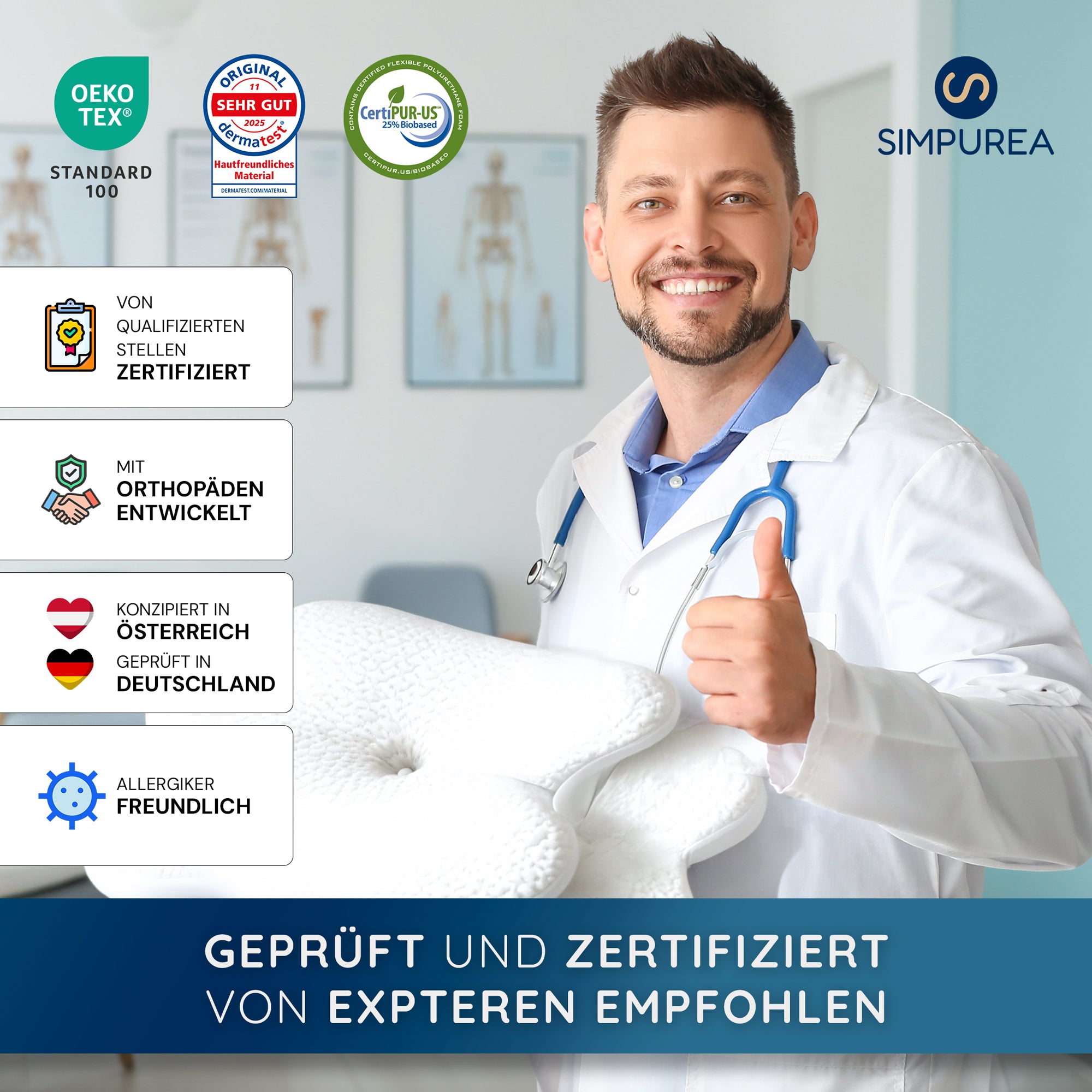 Bei SIMPUREA entwickeln wir hochwertige orthopädische Kissen und ergonomische Sitzkissen, die dein Wohlbefinden spürbar verbessern. Ob für entspannteren Schlaf oder bequemeres Sitzen im Büro – unsere Produkte vereinen ergonomisches Design mit hochwertigen Materialien. Entwickelt mit Experten, um deinen Alltag spürbar komfortabler zu machen.