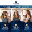 Alle SIMPUREA® Schlafkissen sind für Rücken-, Seiten- und Bauchschläfer entwickelt. Modelle wie „Night Owl“ bieten sogar zwei Höhen zur individuellen Anpassung.